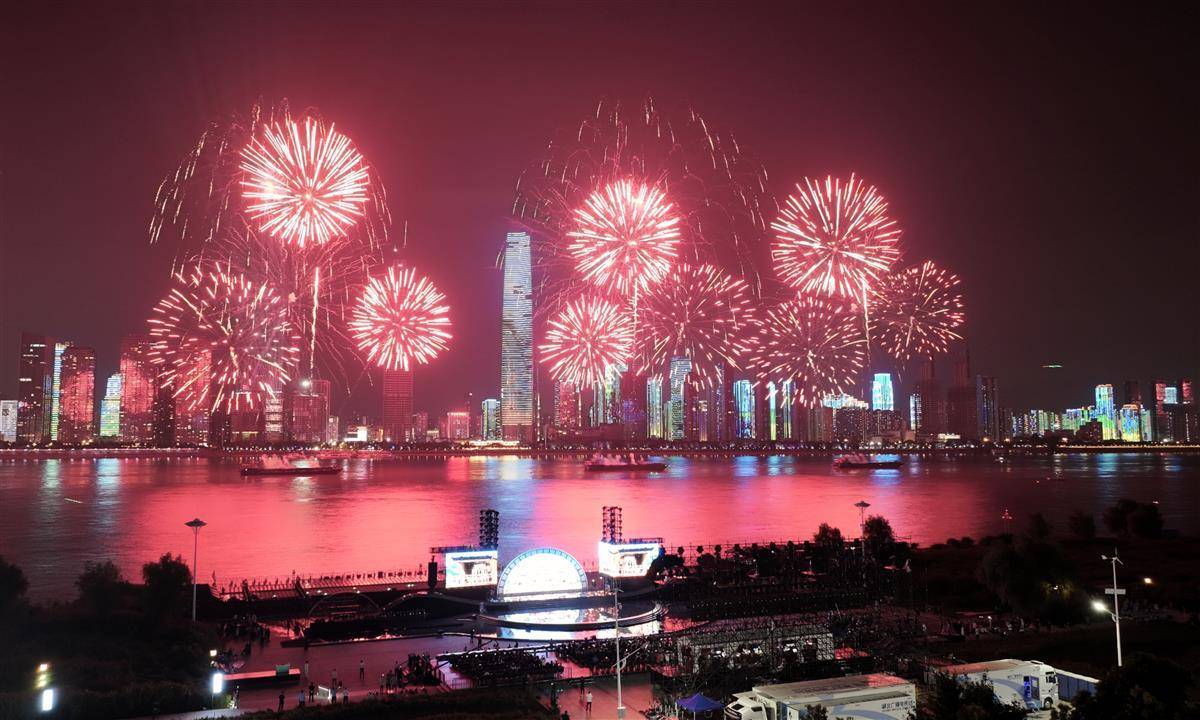 这项训练的高潮是烟花表演的精美表现。华丽的烟花继续解释长江夜空的天空,例如精心绘制的巨型卷轴滚动。在墨水天空的背景下,五颜六色的烟花盛开,倒了金色的火花,例如瀑布,经过流星的银色轨道以及各种形状的花朵,在强烈的爆炸摇动灵魂之后,这些框架盛开,全面开花,这座城市的框架立即点燃。
