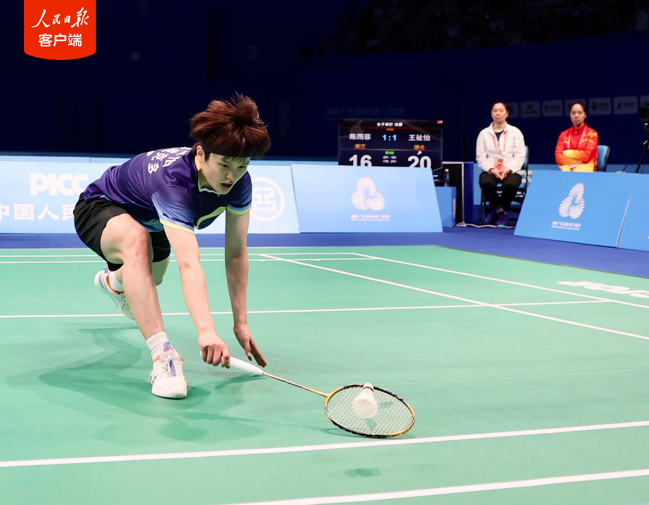 视频来源:咪咕体育 11月20日,第十五届全运会羽毛球女子决赛在深圳体育中心体育馆落幕。世界排名第二的湖北队王智毅与奥运冠军、浙江队选手陈雨菲苦战近100分钟决出胜负。最终,王智怡扭转了输掉一局的劣势,以2:1获胜,夺得羽毛球女单冠军赛全国首胜。陈雨菲在全运会羽毛球女单比赛中未能实现“三连冠”的梦想。 (人民日报记者姜雨诗摄)