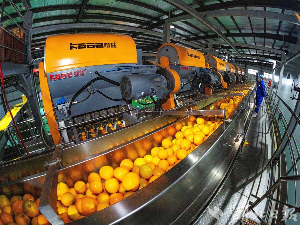 该项目是秭归县脐橙深加工的一大产业。该生产线设计年产NFC(鲜榨橙汁)果汁5000吨,FC(浓缩橙汁)果汁3000吨。建成后,预计年加工鲜果3000万公斤,消化二级脐橙果及加工果6万余吨。这将有效拓展秭归脐橙供应链,提高农产品附加值。据悉,该项目可增加周边1800户农民收入,预计年综合产值1.5亿元,为地方特色农业发展和乡村振兴注入新动力。 (世杰 彭强 摄.com)